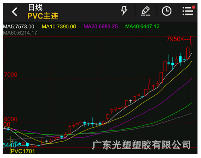今日1701合約強(qiáng)勢上漲,開盤報(bào)7780元/噸,最高報(bào)7950元/噸,最低至7735元/噸,收于7950元/噸,上漲340元/噸,成交量311484手,持倉量減少16614手至173158手。找塑料預(yù)計(jì)短線1701合約將維持震蕩偏強(qiáng)行情。