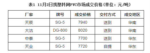 據(jù)找塑料網(wǎng)成交數(shù)據(jù)顯示(見表1)今日上午國內PVC市場成交價格繼續(xù)上調,場內貨源緊俏依舊是市場拉漲的主要原因。西北貨源運輸困難,車皮緊張,汽運費用再度拉漲60-70元/噸,有力支撐價格高位。期貨市場跳水,但在缺貨的局面下,已經(jīng)難以控制現(xiàn)貨市場了。今日華東電石法SG-5主流價格維持在7600-7700元/噸(自提);華南市場電石法SG-5主流成交價7800-7850元/噸(自提)。找塑料國內PVC實際成交指數(shù)為968點,較上一交易日上調5點。