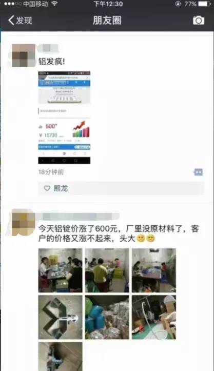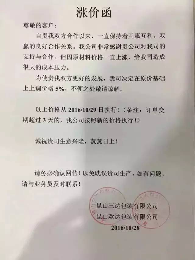 2016年來,房價瘋狂上漲,煤碳、鋼鐵、木材,不銹鋼一路狂飆。當(dāng)房價被揭制之后,運(yùn)輸、化工原料、電子元件、包裝印刷、不銹鋼、鋁材、銅錠開始接力狂漲。在一片“漲、漲、漲“的狂潮之下,中國工業(yè)領(lǐng)域已經(jīng)沸騰。生意難做 ,最后兩月是傳統(tǒng)旺季,本以為可以賺點錢過年,誰知道原材料瘋漲,各種輔料也比拼著漲價,運(yùn)輸成本上漲,人工工資也要漲,連微信支付寶也要收手續(xù)費(fèi)了,深感壓力山大……