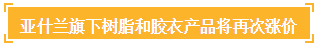 亞什蘭公司(Ashland)再次宣布,由于關(guān)鍵原材料成本的增加,公司將在北美地區(qū)對其出產(chǎn)的全系列復(fù)合樹脂和膠衣產(chǎn)品進行漲價,新價格將對2017年2月15日及以后發(fā)貨的所有訂單生效,或者在合同允許的情況下生效。調(diào)價詳情為:間苯二甲酸型不飽和聚酯樹脂將漲價0.06美元/磅;膠衣產(chǎn)品將漲價0.04美元/磅;不飽和聚酯樹脂UPR(不包括間苯二甲酸型產(chǎn)品)將漲價0.03美元/磅;乙烯基酯樹脂將漲價0.07美元/磅。