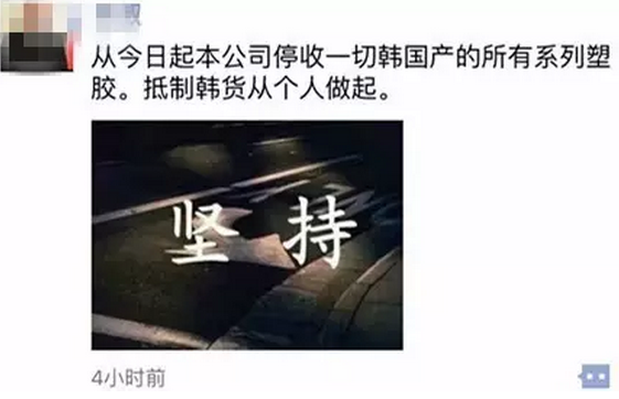 就在前幾天,韓國舉行了大規(guī)模游行示威,高喊美韓同心,誓與中國戰(zhàn)斗到最后。我們作為塑料行業(yè)的人,雖然不能拿著槍到前線去保衛(wèi)我們的祖國,但我們也很愛國,樂天總裁說,就算樂天倒閉,也要把土地轉(zhuǎn)讓給政府部署薩德系統(tǒng),這是他的愛國情懷,但是我們作為中國人,我們也愛自己的國家, 作為塑料高分子材料方面的從業(yè)人員,抵制銷售(韓國)樂天化學(xué)的一切塑膠原料。