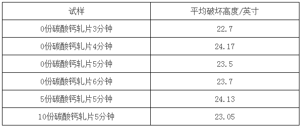 2.軋片的時(shí)間決定塑化度的高低,從上述試驗(yàn)得出,5分鐘以后塑化度基本不變,所以制品的落錘沖擊性能基本不變,軋片4分鐘制品的落錘沖擊性能最好,添加碳酸鈣5份的效果跟不添加碳酸鈣塑化4分鐘的效果相當(dāng),10分碳酸鈣的效果跟0份碳酸鈣塑化5分鐘相當(dāng)。