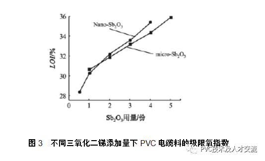 1)納米三氧化二銻對(duì)PVC的氧指數(shù)貢獻(xiàn)大十微米級(jí)三氧化二銻,當(dāng)氧指數(shù)為35%時(shí)一,納米三氧化二銻的添加量可以比微米級(jí)三氧化二銻少20%。