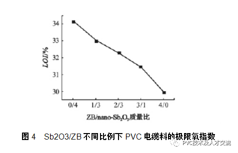硼酸鋅 ( ZB) 與納米三氧化二銻復(fù)配阻燃劑對(duì)PVC 氧指數(shù)的影響