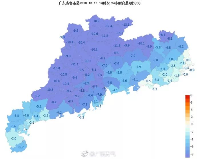 11日,韶關和清遠市零星小雨轉多云,南部沿海市縣陰天有小雨,其余市縣小雨轉陰天間多云。