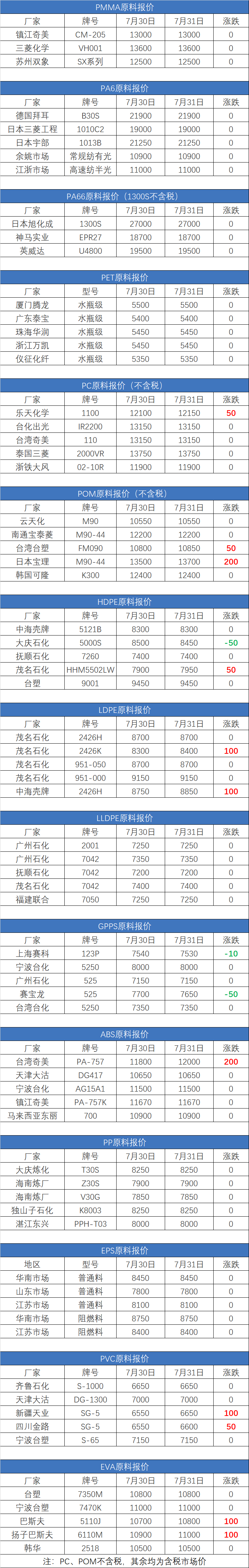 ABS:昨日國內(nèi)ABS市場價格變動有限,部分型號缺貨,價格局部小漲,終端需求進(jìn)入淡季,成交維持剛需,市場成交不溫不火;石化廠開工繼續(xù)維持高負(fù)荷運行,供應(yīng)量不減,但部分廠家交付前期訂單,導(dǎo)致庫存量小幅下降,目前場內(nèi)暫無利好支撐,預(yù)計今日市場價格維持區(qū)間波動,華南地區(qū)寧波臺化15A1主流市場價格參考在11500元/噸左右。(未含稅)