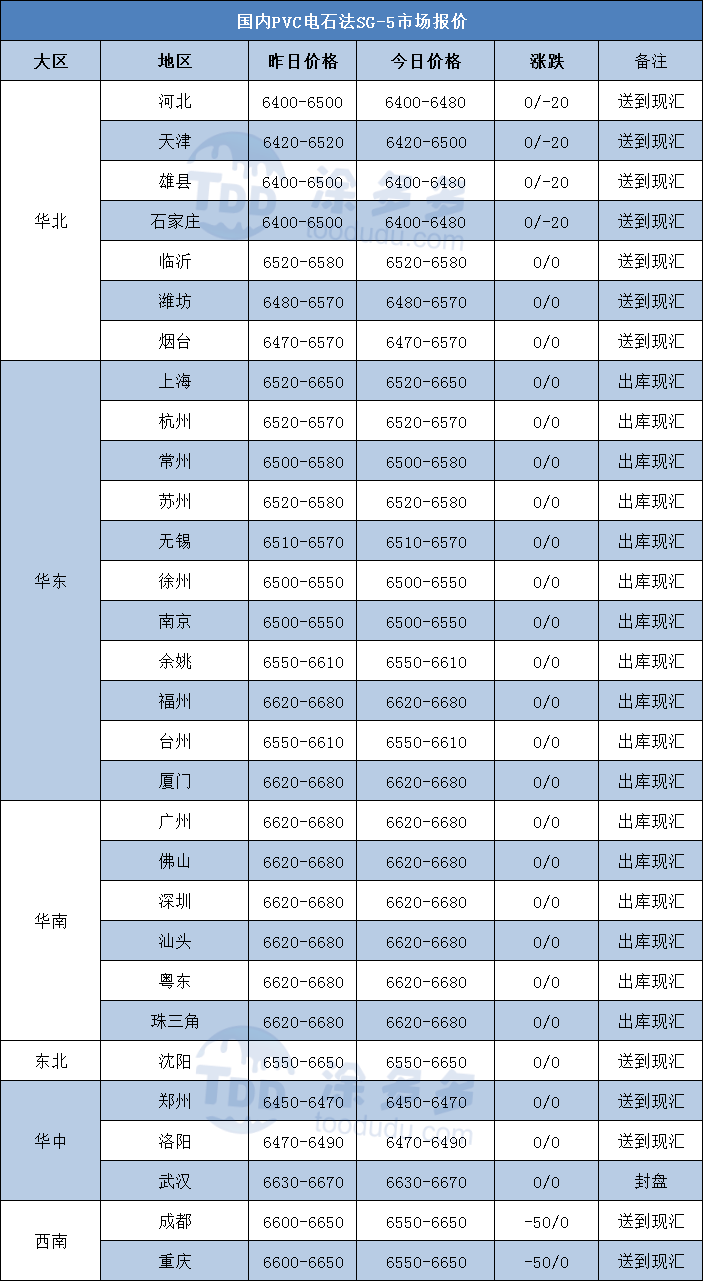 PVC市場(chǎng)主流成交價(jià)格大局持穩(wěn),小部分價(jià)格調(diào)整,成交維持前期
