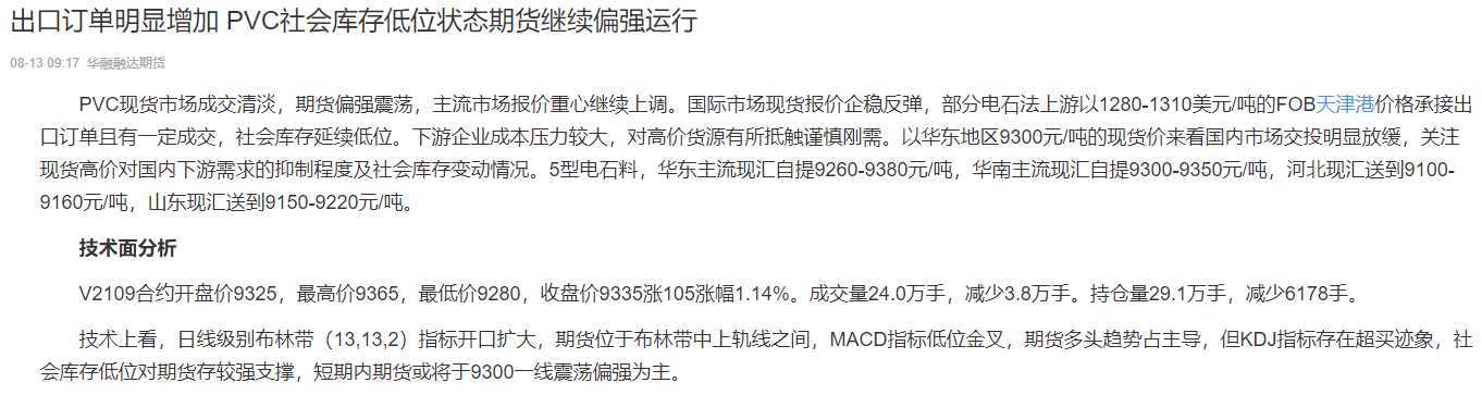 文章標(biāo)題:出口訂單增加,PVC期貨繼續(xù)增強(qiáng)運(yùn)行