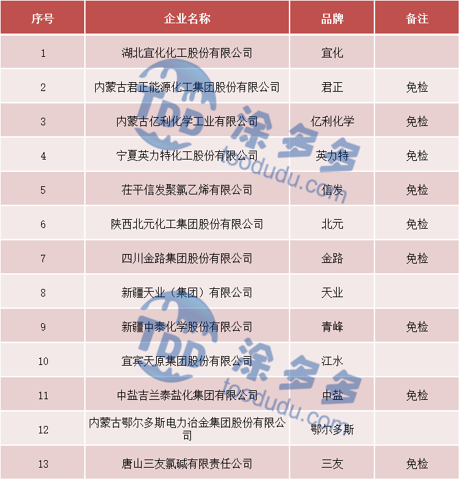 八、PVC期貨注冊及免檢品牌名單: